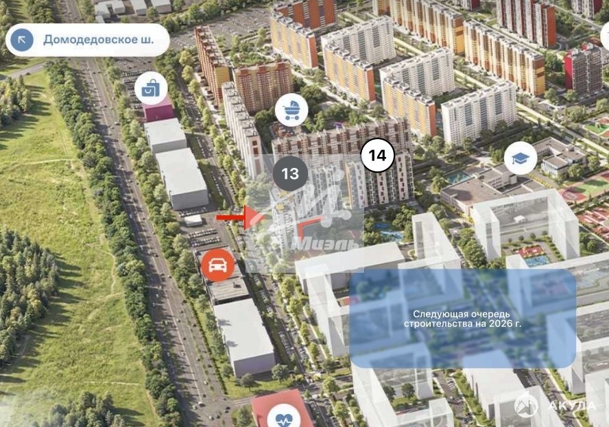 - Помещения находятся в крупном жилом массиве из 26 домов по 18 этажей.