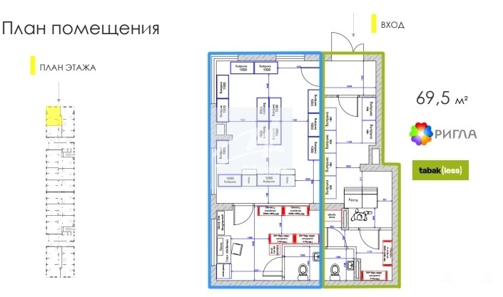 - Общая площадь - 69, 5 м2.