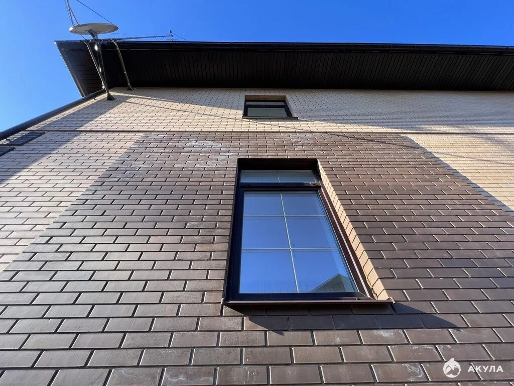 КОНСТРУКТИВ дома построен из газосиликатного блока, обложен кирпичом. Кровля мягкая черепица со снегозадержателями, смонтированы отливы воды, слив в дренажную систему.